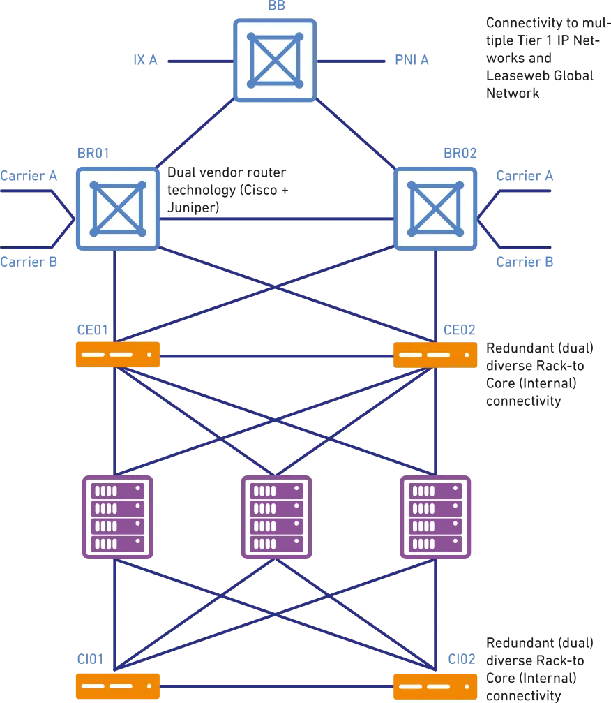 99.999% را تضمین میکند. این معماری با استفاده از فناوریهای پیشرفته نظیر شبکهسازی نرمافزار محور (SDN) و محافظت خودکار در برابر حملات DDoS، انعطافپذیری و امنیت بالایی فراهم میآورد.